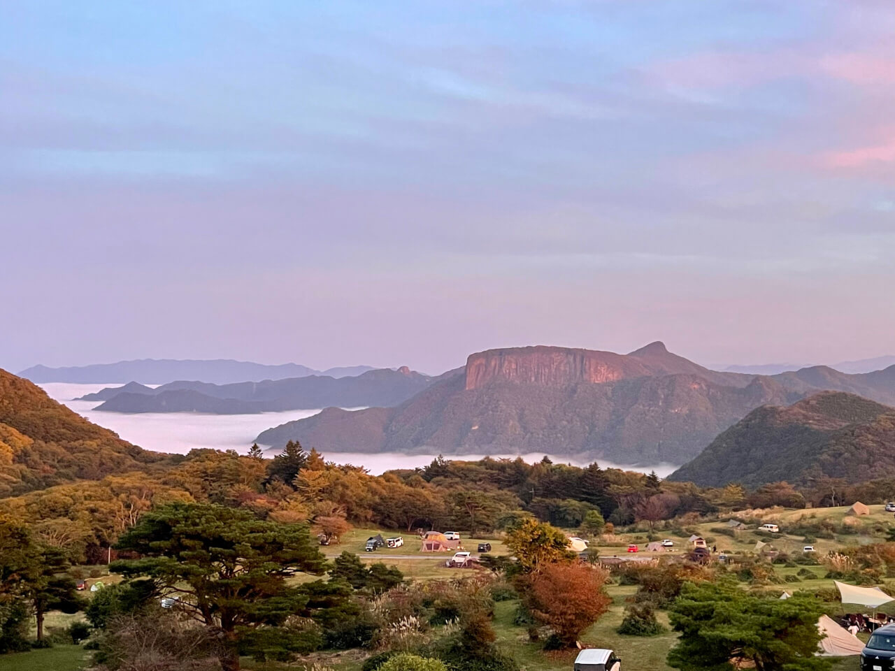よ〜く見たら、茜色の夕日が荒船山を照らし、