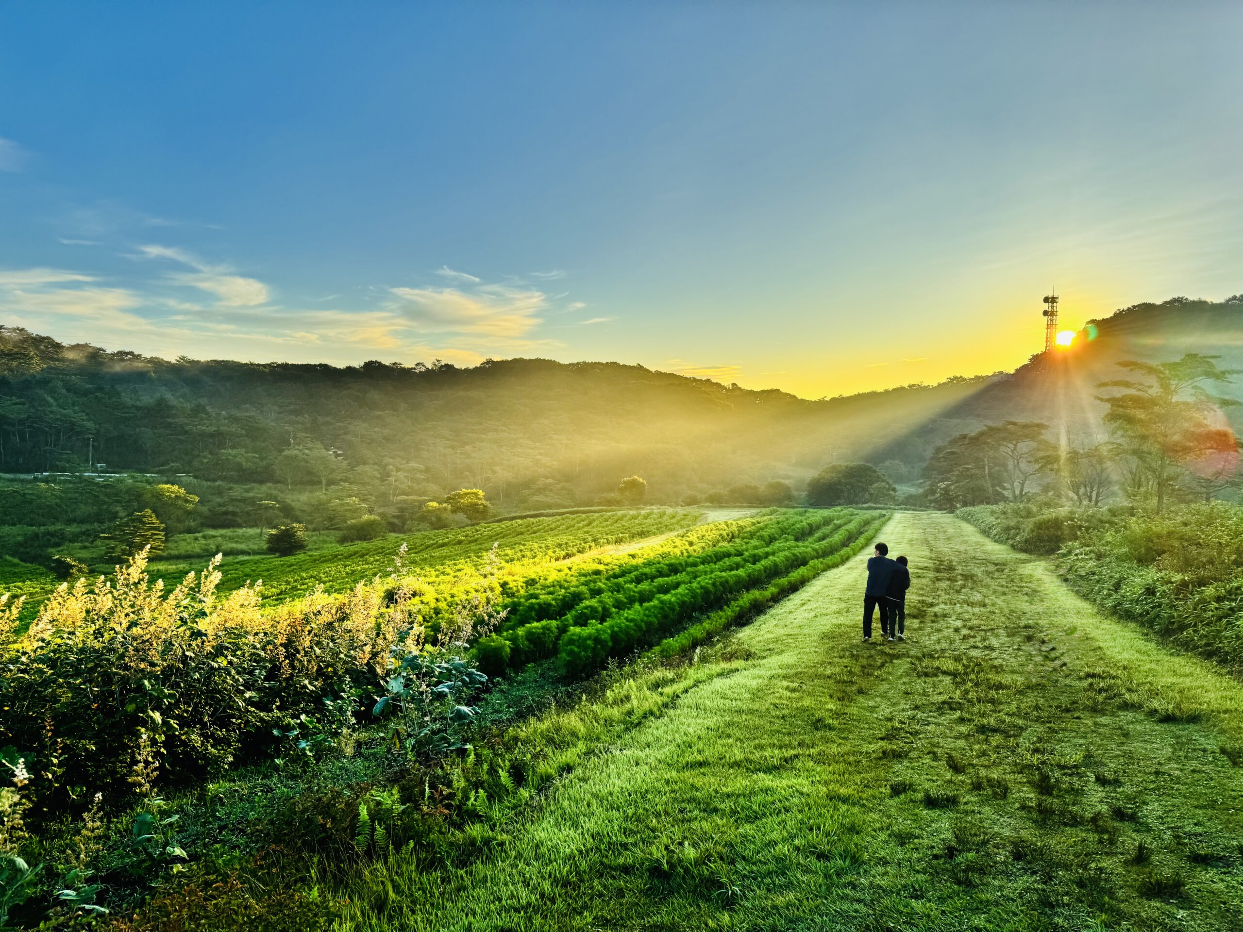 本当に清々しい朝で、雲海と日の出を見ることができて幸せな時間でした!パパと息子で日の出をもっと見たいと歩いている写真です。