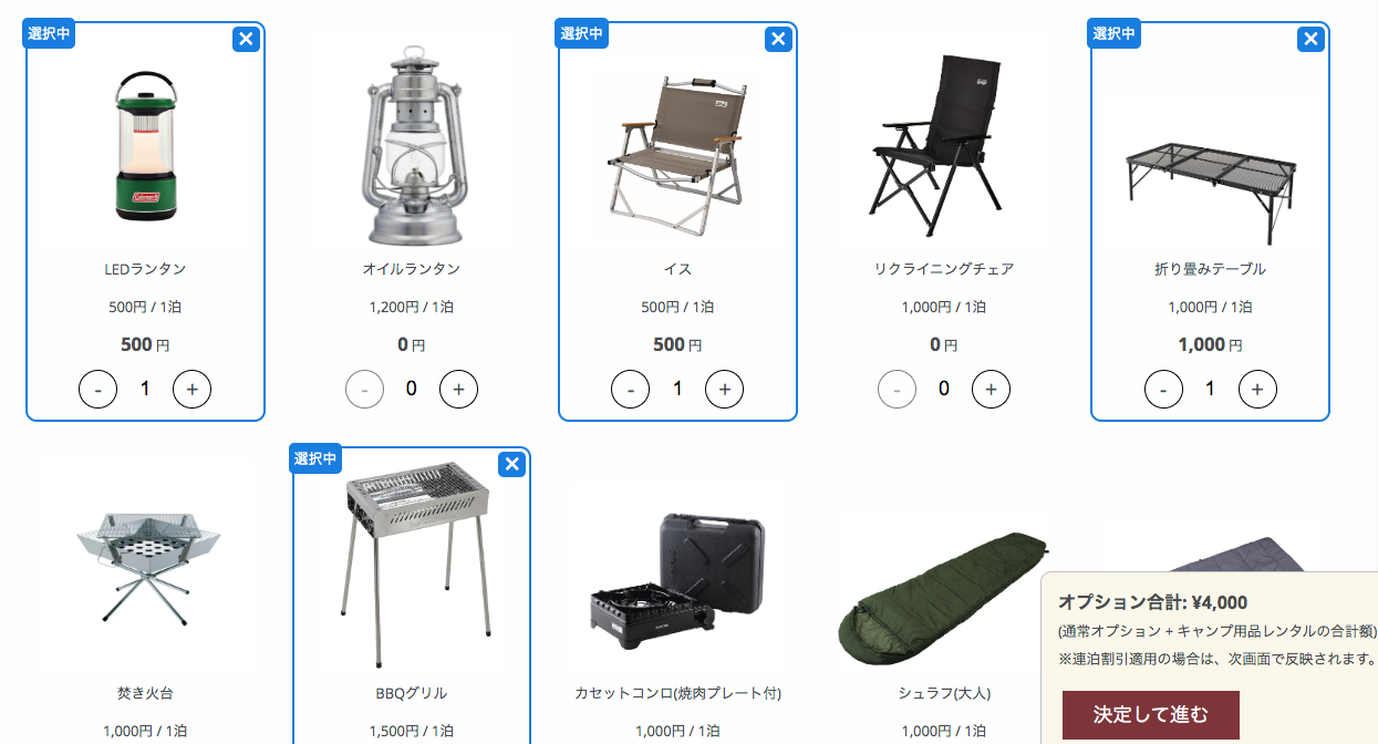 レンタル用品は、プランご予約画面内でカンタン申込み!!